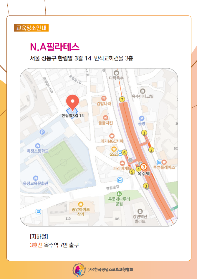* 교육장소 : N.A 필라테스 ( 서울 성동구 한림말 3길 14 반석교회건물 3층)